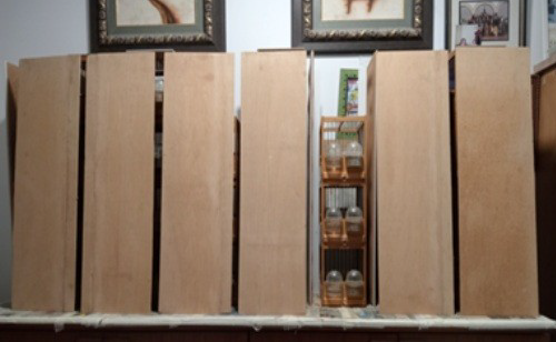 Lo que sí hago es que, una hora antes de que les toque salir a cantar en la mesa, les pongo unas tablitas delante (como se ve en la foto) para que se calmen y estén tranquilos. Las jaulitas están separadas de la pared, y el separador entre los lotes está forrado de corcho, todo pensado para evitar en lo posible la reverberación del sonido.